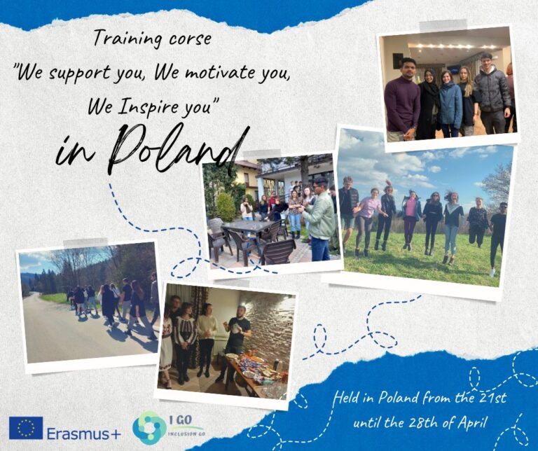 Il corso di formazione, intitolato “TI SUPPORTIAMO! TI MOTIVAMO! TI ISPIRIAMO!“, è stato ospitato dalla Fundacja Salamandra dal 21 al 28 Aprile 2023.